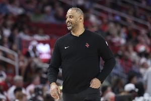 主帅乌度卡表示球队将延用揭幕战对阵雷霆的先发阵容:阿门-汤普森(2米01)、杜兰特(2米11)、小贾巴里-史密斯(2米11)、申京(2米11)和史蒂文-亚当斯(2米11)。