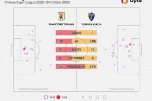 云南玉昆本场比赛有8次射正,追平球队单场中超射正次数的纪录——8月15日vs武汉三镇也是8次。