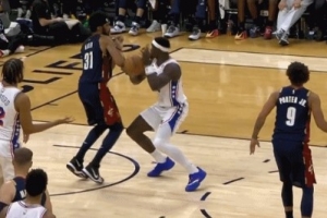 下一篇: 垂直上升!阿门·汤普森反击超长滞空闪过防守上篮打中