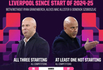 据Opta数据统计,这三人组合在所有赛事中共同首发的36场比赛,取得26胜3平7负的成绩。相比之下,37场至少有一人缺席首发的比赛中,球队的胜率从72.2%降至59.5%(22胜7平8负)。此外,三人同时在场时,球队场均失球仅0.8个,而缺少任一人首发时场均失球增至1.4个。