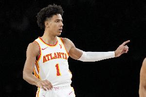 老鹰球星杰伦·约翰逊本场比赛出战40分钟,19投10中,三分5中4,罚球11中7,爆砍31分18篮板14助攻7抢断的全能数据。
