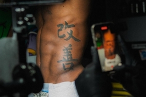 体育资讯10月7日讯 纹身师Kavon Udoh晒出了他为内史密斯新增纹身的动态,内史密斯纹在腰间的是两个大大的汉字——改善。