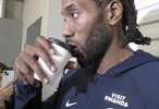 在赛后采访中,记者问小卡杯子里喝的啥,小卡调侃:“轩尼诗,不不,开个玩笑。”